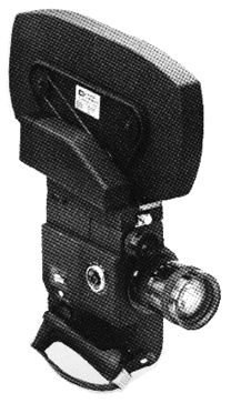 The Canon Scoopic M/MS 16mm camera has long been regarded as an ideal MOS camera for newsreels, industrials, documentaries and wildlife cinematography. It is also probably one of the better 16mm camera buys on the used market these days. Although the basic film load is only 100', the camera can also be fitted with the optional 400' magazine adaptor (see photo). The lens is an integral Canon 12.5 to 75mm f/1.8 (T2.5) with macro capability. Automatic or manual exposure control is selectable as are the five filming speeds of 16, 24, 32, 48 and 64 fps. The camera weighs 7.5 pounds with film and battery.